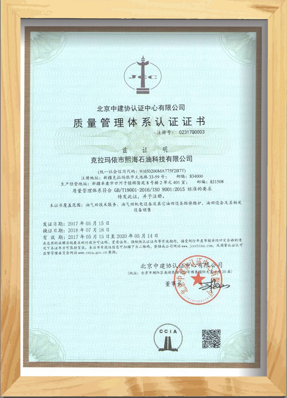 質(zhì)量管理體系認證證書