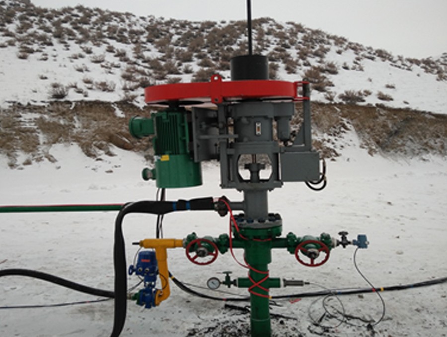 螺桿泵采油系統(tǒng)主要分為井下部分和地面部分組成,而地面部分也就是我們常說的螺桿泵地面驅(qū)動(dòng)裝置,它的作用是為井下部分的螺桿泵提供動(dòng)力來源,驅(qū)動(dòng)抽油桿柱、帶動(dòng)井下螺桿泵運(yùn)轉(zhuǎn)實(shí)現(xiàn)液體的舉升。我公司生產(chǎn)研發(fā)的液壓剎車螺桿泵地面驅(qū)動(dòng)裝置由于其結(jié)構(gòu)簡(jiǎn)單、噪音低、成本低、反轉(zhuǎn)自動(dòng)剎車、使用維護(hù)方便而受到廣大用戶歡迎。